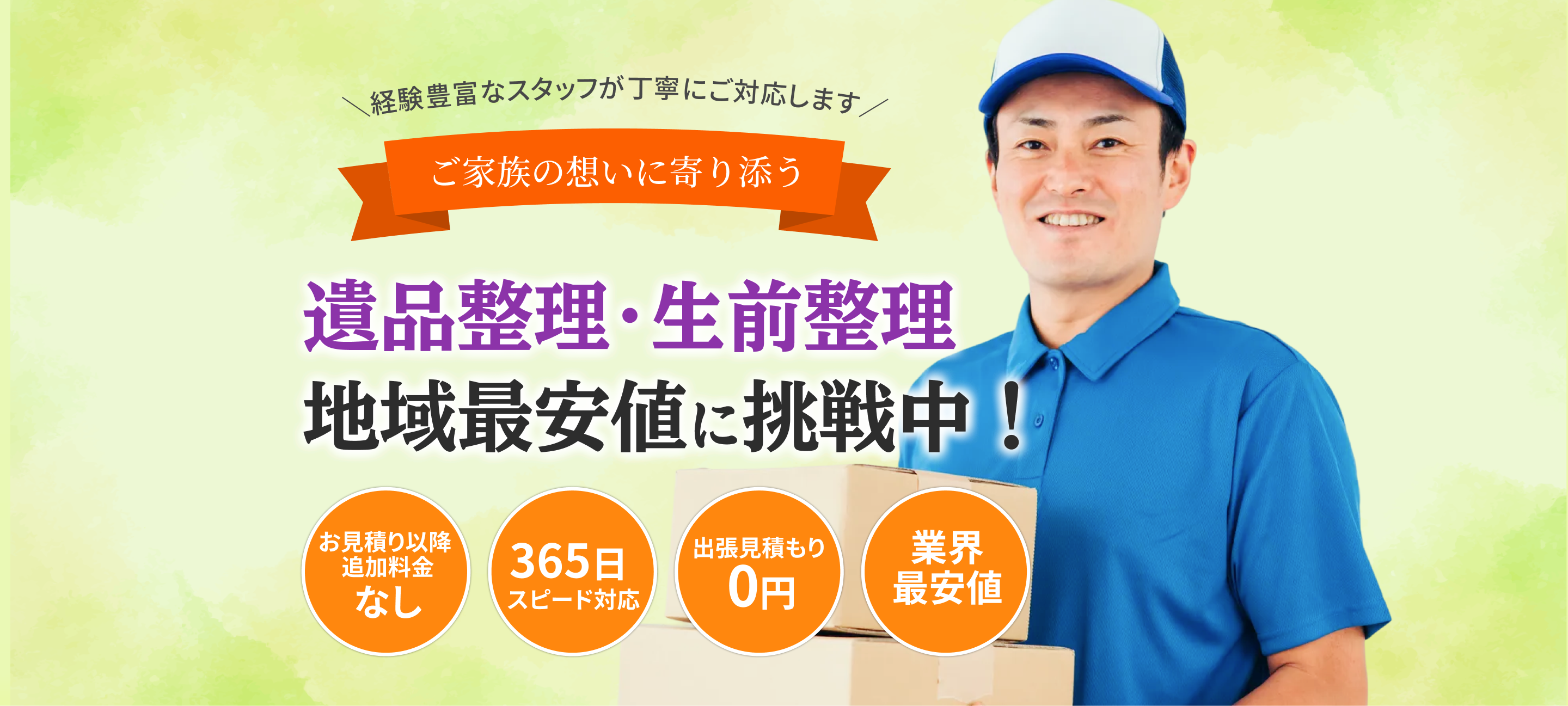 見積もり後の追加料金ゼロ。階段料金・駐車場代も全て込み。他社より高ければ即座にお値引きします。