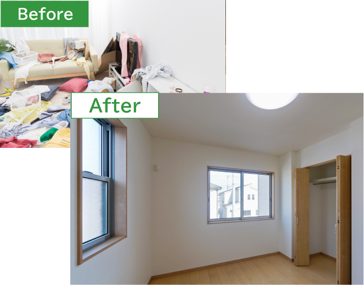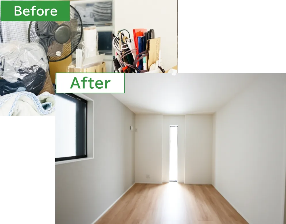 賃貸の退去期限が3日後に迫っており、パニック状態でした。電話したその日に来てくださり、翌日には全て完了。スピードだけでなく、作業も丁寧で貴重品もしっかり見つけていただけました。